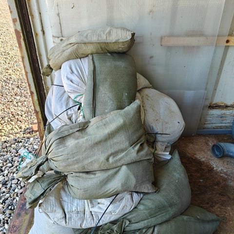 Stor bunke sandsække i grøn