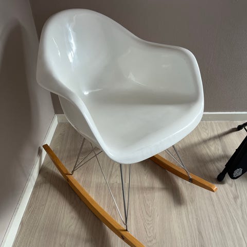 Ældre, flot og velholdt gyngestol med en knækket tværpind på stellet. Uden betydning for stabiliteten. (Se foto). Meget få brugsmærker, uden skader på skallen.