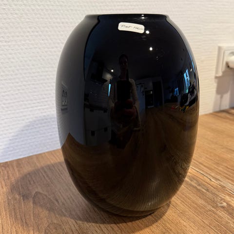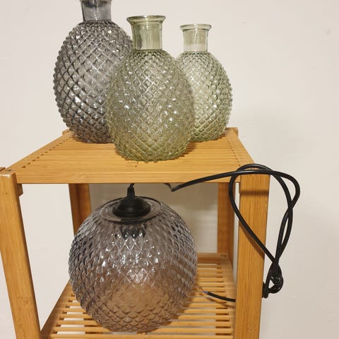 Batteridrevet glasvase med krakelé-mønster i hvid. Vasen har indbygget lysfunktion, som drives af batterier, der isættes i bunden. Overfladen har et dekorativt krakelé-look, og formen er rund med en kort fod. Velegnet som stemningsbelysning eller dekoration på bord, reol eller vindueskarm.
