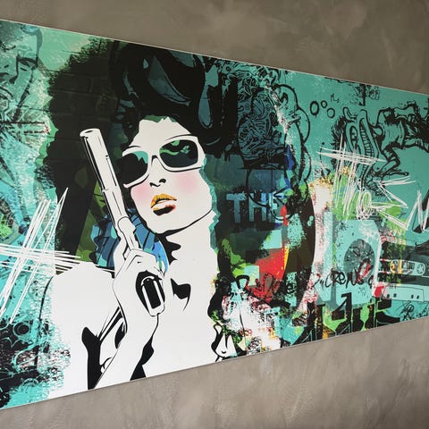 Motivet af den Svenske og internationalt anerkendte skuespillerinde viser Christina Lindberg som karakteren 'Madeleine' fra 'Bo Arne Vibenius' kultfilm Thriller – en grym film (1973).
