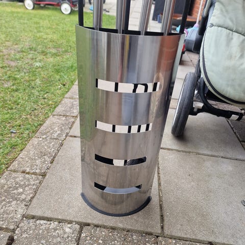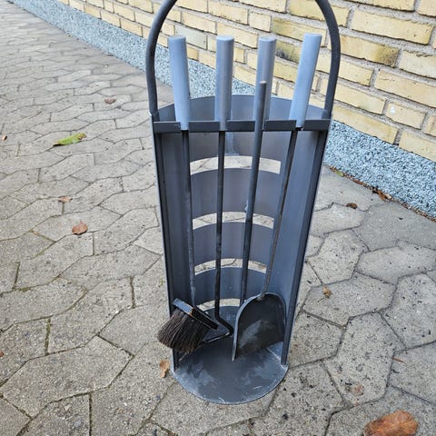 Pejseværktøj sæt med spand i sort metal. Pænt og velholdt, perfekt til dit sommerhus
