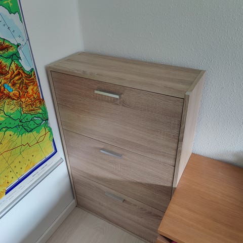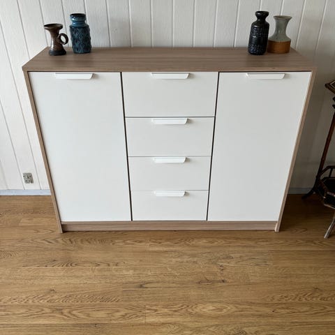 Kommode trælook med låge og skuffer / Wood-look dresser with door and drawers