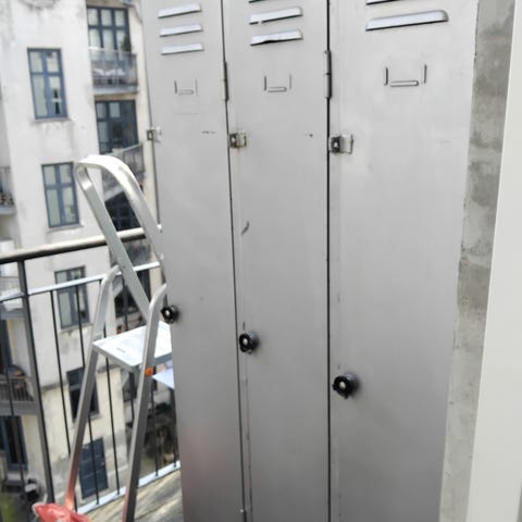 Super fedt gammelt jernskab, med god patina i farverne mørkegrøn/ grå.
