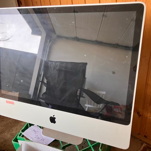 Apple iMac stationær computer med 20" skærm. Modellen er i hvidt kabinet med indbygget skærm og frontkamera. Velegnet som alt-i-én stationær computer til generel brug, kontoropgaver eller medieafspilning, afhængigt af den konkrete hardwarekonfiguration og installeret software.