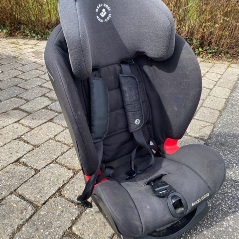 Maxi-Cosi Titan. Kan roterer i sædet så det er nemmere at få barnet ud af sædet. Ingen iso fix men spændes fast med sikkerhedssele