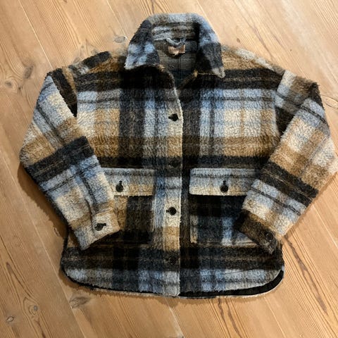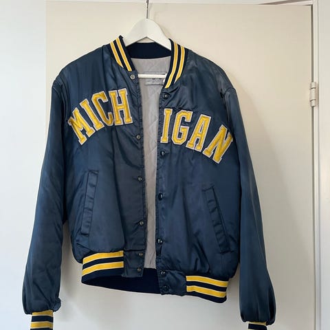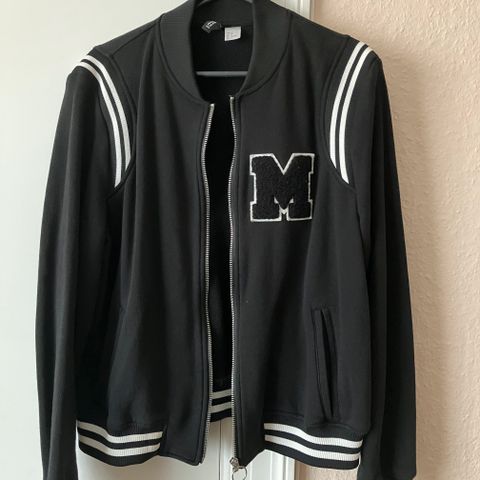 H&M Divided jakke til kvinder i størrelse XXS. Jakken er fremstillet i polyester og har et multifarvet college-look med grøn front og ryg samt hvide ærmer og detaljer. På brystet er der et stort bogstav "M" og teksten "Minnesota College", som også er broderet på ryggen. Jakken har trykknaplukning foran, ribkant ved hals, ærmer og forneden samt lommer i siderne. Velegnet som let overgangsjakke eller casual hverdagsjakke.