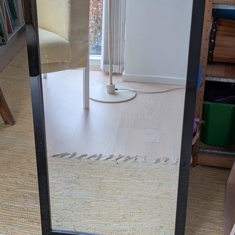 NICHBA vægspejl med sort ramme. Rektangulært spejl egnet til ophæng på væg, f.eks. i entré, gang eller soveværelse. Spejlet har en enkel, sort ramme, der giver et neutralt og stilrent udtryk og passer ind i forskellige indretningsstile.