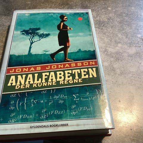 Jonas Jonasson Analfabeten der kunne regne bog. Dansk udgave udgivet på forlaget Modtryk. Skønlitterær roman i trykt bogformat med omslag som vist på billederne.