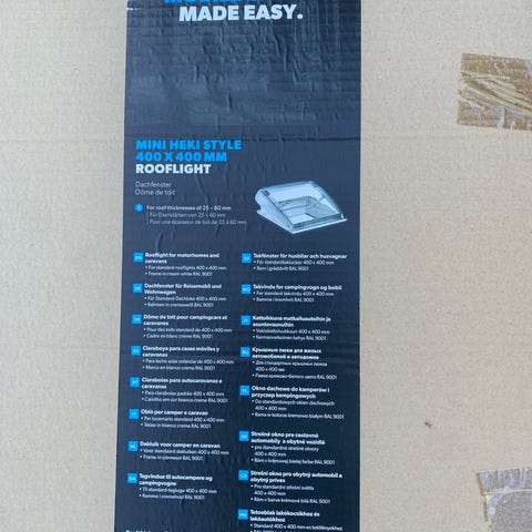 Taglugen er så god som helt ny. Er afmonteret fra ny campimgvogn pga isætning af airconditionanlæg. Der er mørklægningsgardiner og myggenet. Passer til et hul der er 40 x 40 cm. Har siddet på en Detleff Beduin Nordic. Evt transport er på købers regning. Pakken kan desværre ikke sendes med Fiks og Færdig, da den er for stor på den ene led. Og lugen kan ikke være i en mindre kasse.