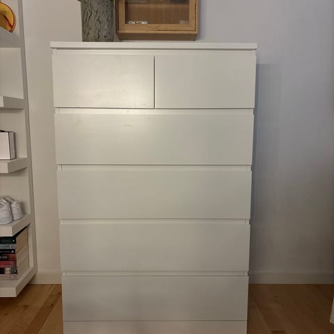 Den er som ny, men den er et fejl køb, da vi mangler flere skuffer til tøjet.