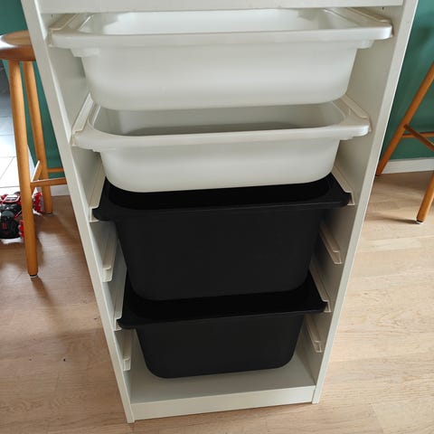 IKEA stuvareoler u hvid til børneværelse. Velegnet til opbevaring af legetøj. Overfladen er glat og nem at tørre af.
