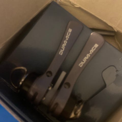 Shimano Exage bremsegreb til racercykel i slidt tilstand. Der mangler et plastik cover foran, sammenlign evt. med billeder fra Google af samme model. Mig bekendt virker de fint sådan som de er. Beslagene har set bedre dage. Super pris på et ellers dyrt produkt, hvis man er en tosse der går op i at have den rigtige gruppe på sin gamle cykel.