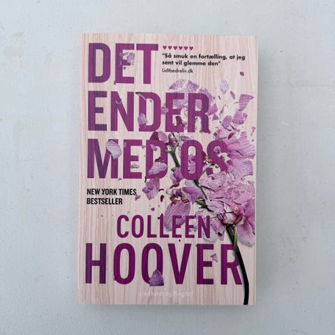 Colleen Hoover "Det ender med os" bog på dansk. Roman udgivet på dansk, paperback-udgave med trykt omslag. Bogen er skønlitteratur og henvender sig til voksne læsere. Velegnet til læsere af moderne kærligheds- og relationsromaner.
