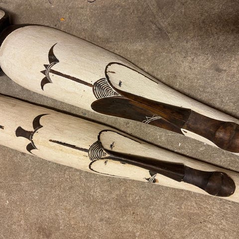 3 træ masker og 1 af ler/sten og 1 træ figur sælges