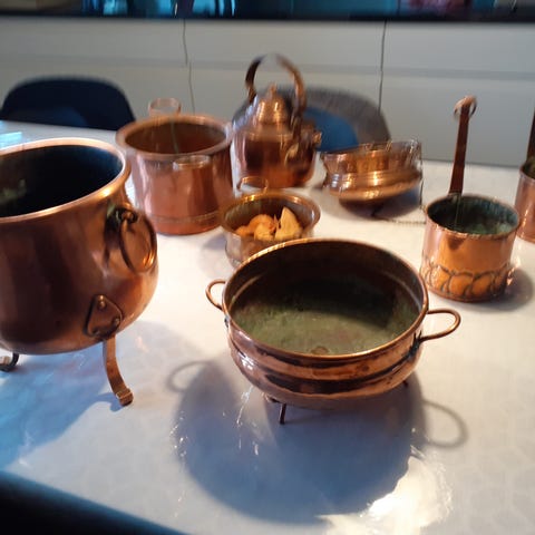 Køkkenudstyr, Messing og kobber , 120 år gl.