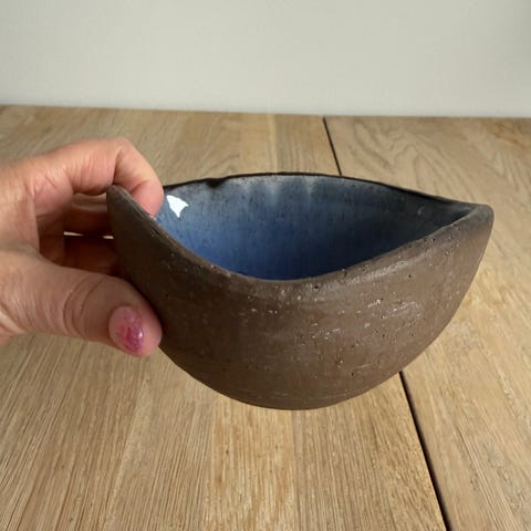 Drejet keramik skål, havblå 23 X 7,5 cm