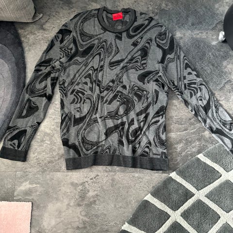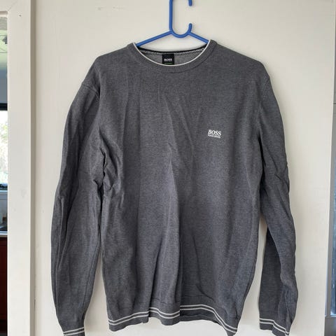 Hugo Boss sweatshirt til herre i grå bomuld, størrelse M. Trøjen har rund hals, ribkant ved hals, ærmer og forneden samt diskrete detaljer ved kraven. Egnet som hverdags- eller fritidstrøje og kan bruges alene eller over en T-shirt.