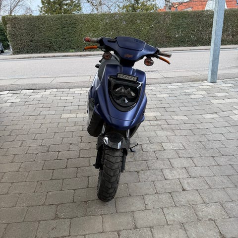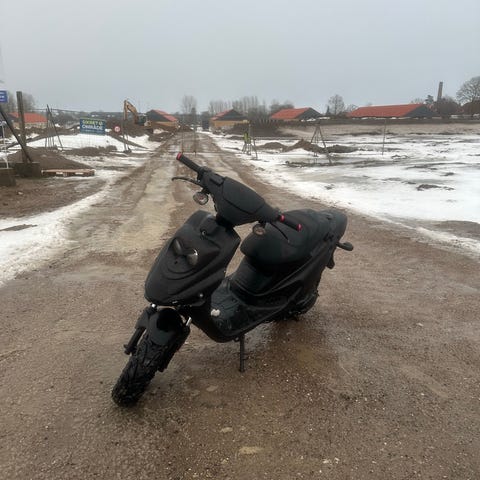 Den har ikke nummer plade fordi jeg ikke ville betale forsikring på en knallert jeg ikke brugte, men har registrering til den.