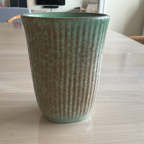 Materiale: Den er lavet af hvidglaseret keramik.