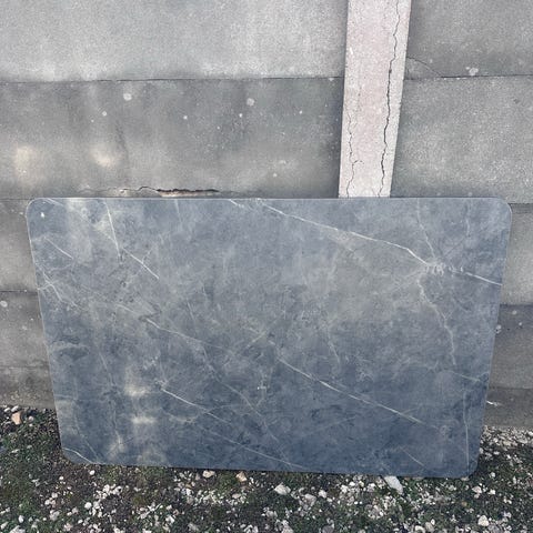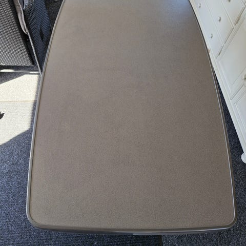 Isabella bord, hvor pladen er fin, og de sorte kanter har brugsridser. Bordet kan justeres på et af benene.
