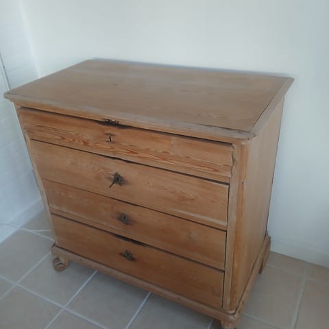 Kommode i afsyret fyrretræ, 4 skuffer.