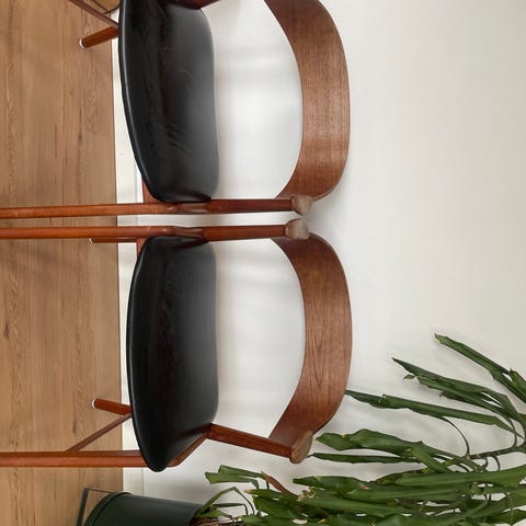 Virkelig flotte stole i teak træ med læderflet.