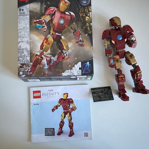 Består af en bevægelig mech i gule og mørkeblå farver med Infinity-handske og farvede sten på den ene arm. Model nummer er 76141 og fra LEGO Marvel produkter. Med instruktion men uden æske.