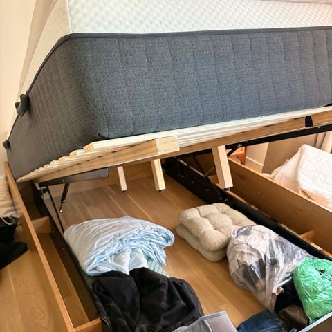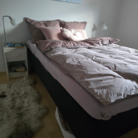 Jeg sælger en ny seng med madras samt ekstra sengegavl og hylder. Sengen er kun blevet brugt én gang. Jeg sælger den, fordi jeg flytter og ikke har plads til den.