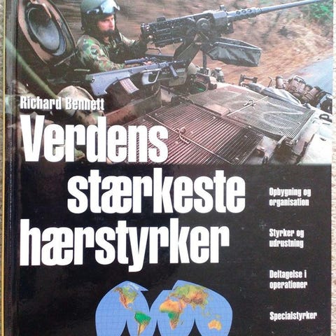 Verdens stærkeste hærstyrker, Af Richard Bennett, emne: historie og samfund, 2002. 191 sider, ill, ib. - Opslagsværk opdelt i verdensområder og lande. For hvert lands hærstyrker beskrives fortidige, nuværende og fremtidige roller, samt dets operationer, våben, enheder, specialstyrker og organisation