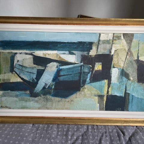 Helge Eskild : Maleri abstrakt landskab i ramme