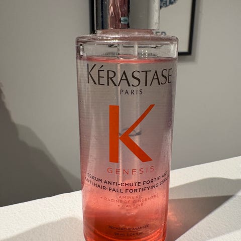 Kérastase Genesis Homme Spray de Force Épaississant hårspray, 150 ml. Hårspray til mænd udviklet til tyndt eller svækket hår. Indeholder blandt andet kreatin og ingefærrodsekstrakt. Produktet er leave-in og skal ikke skylles ud. Anvendes i håndklædetørt hår og fordeles jævnt, hvorefter håret kan styles som ønsket.