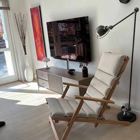 Børge Mogensen dækstol BM 5565 med fodskammel fra Carl Hansen & Søn.