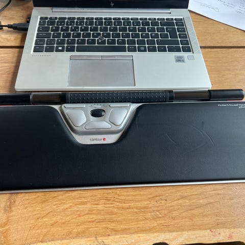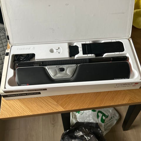 Mousetrapper Prime ergonomisk mus til det ergonomiske skrivebord. Enheden placeres foran tastaturet og betjenes med hænderne hvilende på de integrerede håndledsstøtter. Den har centreret styreplade, funktionsknapper samt tilslutning via USB-kabel. Velegnet som alternativ til traditionel computermus ved skrivebordsarbejde.