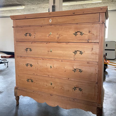 Stor kommode med 5 skuffer.