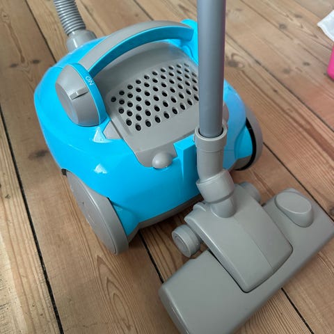 Helt fantastisk støvsuger til børn. Legetøjet har helt nye batterier i. Så ved tænd laver den sugelyde. Alt fungere og den er som ny. Sælger kun da vores datter er vokset fra den.
