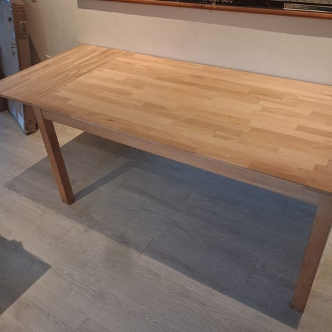Fint egetræs bord til salg. Har lidt ridser, men intet man lægger mærke til. Kan ikke huske, hvor bordet er fra.