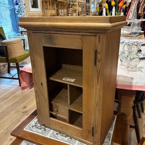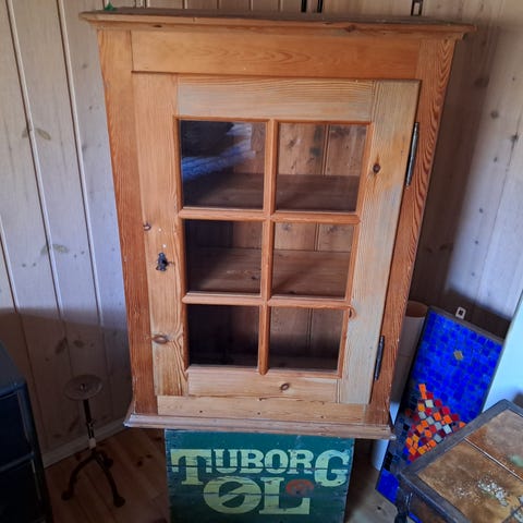 Antikt vitrineskab/tobaksskab, væghængt, med håndmalet blomstermotiv