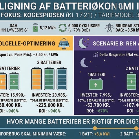 Kun batteripakken — kogespids-arbitrage: ~3.500 kr./år
