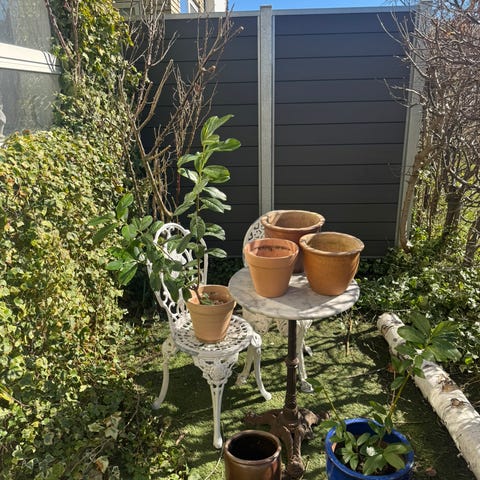 Sæt med plantekrukker i forskellige størrelser. Sættet består af flere klassiske terracottakrukker samt sorte plastkrukker. Krukkerne egner sig til udendørs og indendørs beplantning, f.eks. blomster, krydderurter eller mindre buske. Blandingen af terracotta og plast giver mulighed for forskellige udtryk og anvendelser i haven, på altanen eller terrassen.