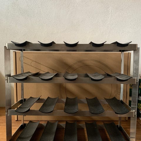 Vægmonteret skohylde med plads til flere par sko. Kan monteres ved siden af hinanden eller ovenpå hinanden. Fremstillet i metal med børstet stål-look. Egnet til opbevaring af sko i entré, gang eller garderobe.