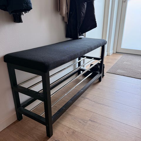 J-me skohylde i metal. Bredde 70cm, dybde 14,5 cm, højde 9 cm .
