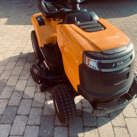 Iseki SF230 AWD havetraktor med frontmonteret klipper. Traktoren har førersæde med ryglæn, ratstyring og pedaler til betjening af fremdrift og bremse. Betjeningsgreb til klipper og kørsel er placeret ved siden af sædet. Instrumentpanelet viser driftstimer og basisindikatorer. Frontmonteret klippeaggregat er egnet til klipning af større græsarealer, f.eks. haver, plæner og grønne områder. Maskinen er udstyret med trekantet advarselssignal bagpå til kørsel på vej eller område, hvor synlighed er påkrævet.