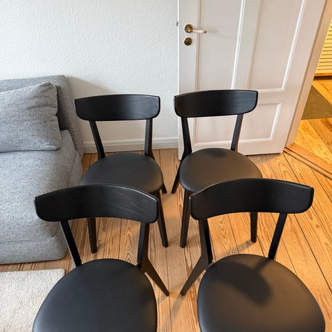 4 stole fra Jysk i brun kunstlæder. De er alle i god stand og fungere som de skal.