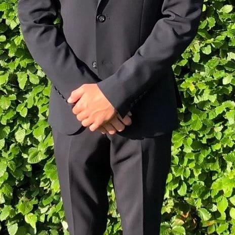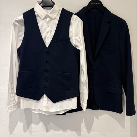 Lindbergh slim fit habit i mørkeblå. Jakke og bukser er i størrelse EU48 (US 38R) og har et figursyet snit. Fremstillet med genanvendte fibre i foret. Klassisk model med revers, enkelt knaplukning foran, brystlomme samt to frontlommer med klap. Skjorte medfølger. Brugt til konfirmation. Konfirmanden var 175cm.