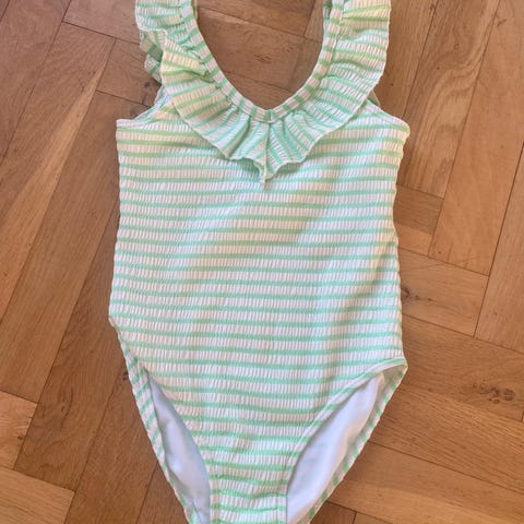Badedragt fra PompDelux. Skøn rødbrun farve med smocksyning. Begrænset brugt. Vil tro, at det er størrelse 9-10 år, men min datter klippede mærket ud.