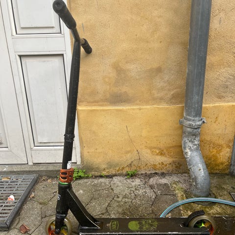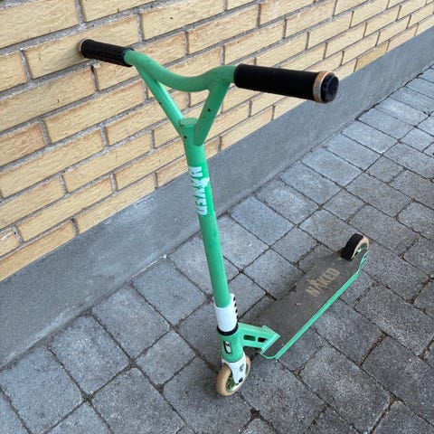 NKD Core stuntløbehjul i sort. Løbehjulet har sort deck med NKD Core-grafik og sort styr med greb. Forgaflen og clampen er i metal med flerfarvet detalje ved forhjulet. Egnet til tricks og kørsel i skatepark eller på jævne underlag.
