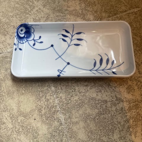 Royal Copenhagen porcelænsfad rektangulært hvid med blå dekoration