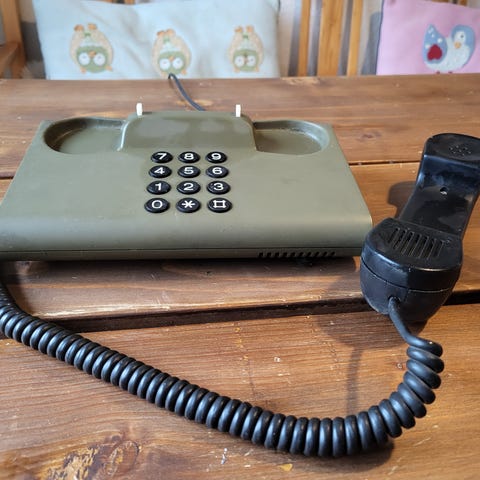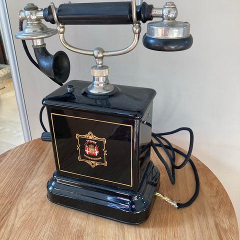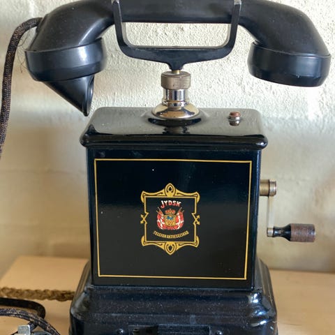Fastnettelefon med drejeskive i grå farve. Klassisk bordtelefon med nummerskive og tilhørende spiralledning. Telefonen tilsluttes via fastnetstik, som ses på billedet. Velegnet som brugstelefon på fastnet eller som dekorativt retroelement i indretningen.