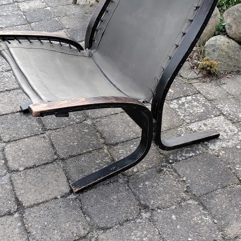 Siesta Classic høj lænestol med brunt læder og lyst træ designet af Ingmar Relling.