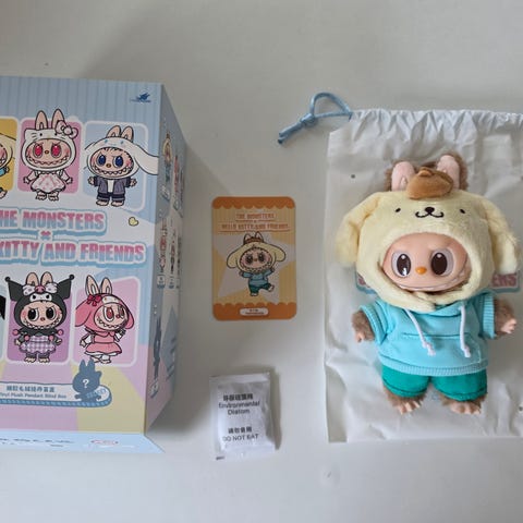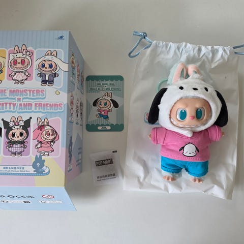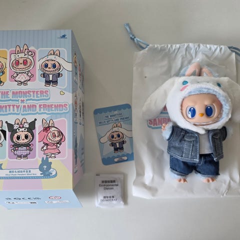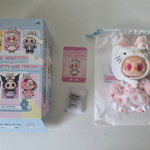 My Melody Labubu, Hello Kitty Labubu, Sanrio Labubu, Pop Mart Labubu, designer toy, samlerfigur, vinyl figur, kawaii, blind box åbnet, original emballage, med kort, ægte Labubu